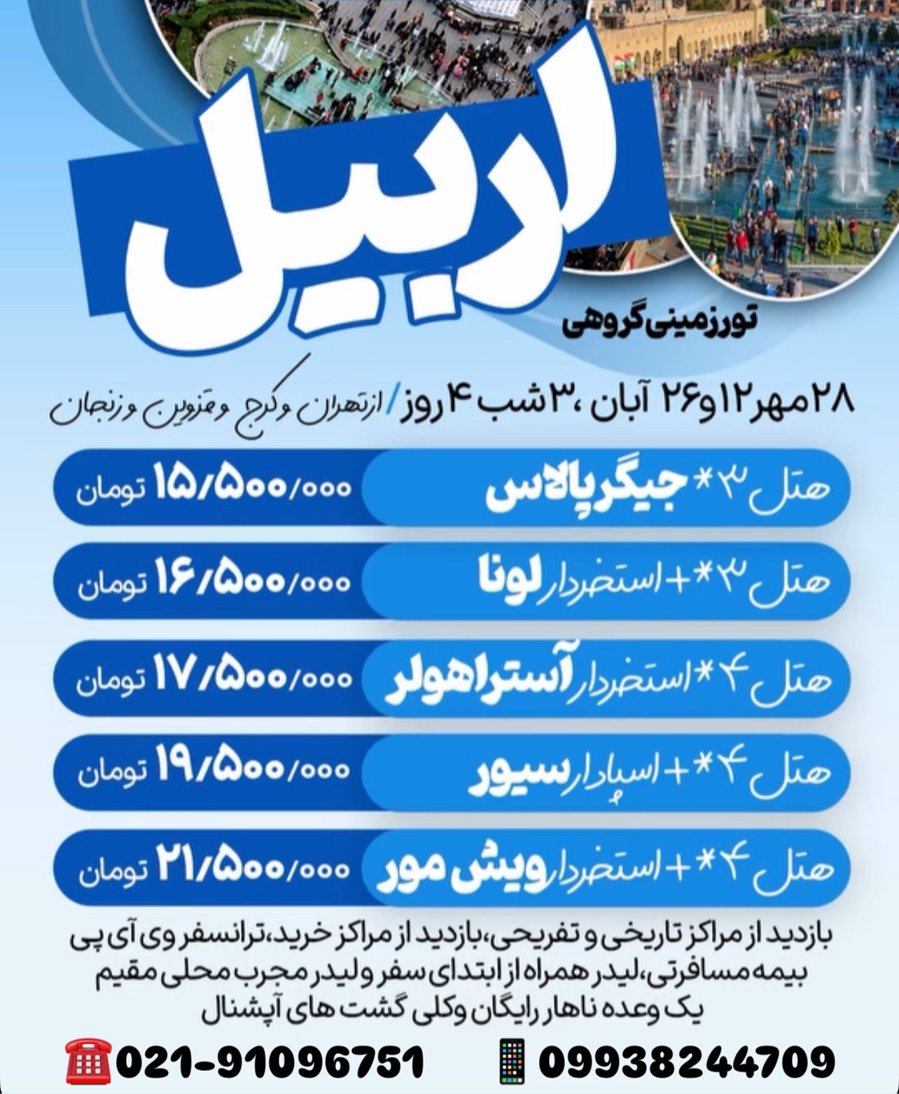 تور زمینی اربیل گروهی شاد ویژه پاییز ۱۴۰۴